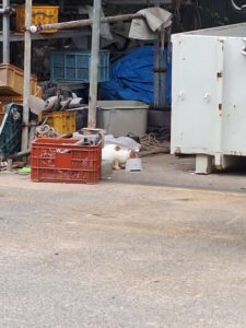 その日の夕方、シロがよく出没する敷地内の隅にご飯を置いていたらバクバクと食べていました。